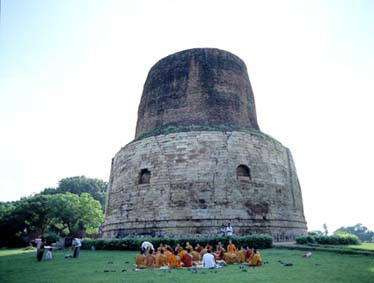 鹿野苑 距離印度「瓦拉那西」(Varanasi)僅10公里左右的鹿野苑(Sarnath),是世人心中綻放「法之光明」的神聖地方,在这佛教歷史上被稱為-初轉法輪之处(Dharmachakra Pravartana)!释迦佛陀第一次明晰地闡釋自己所覺悟到的真理,而初次聽聞這至善之法的人,也就是后人敬仰的阿若乔陈如等五比丘了。他們闻法证果,成為了佛陀的第一批比丘弟子,也成為了佛法的传薪火炬